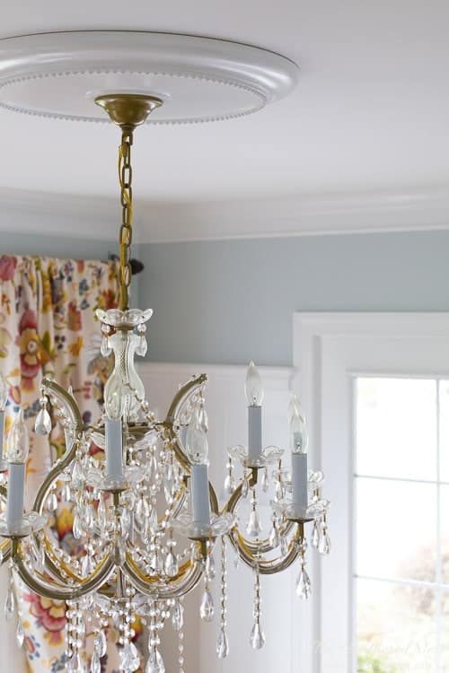 Make a statement by centering a decorative medallion over a chandelier, as shown below by Heathered Nest. Plus, medallions can cover up eyesores such as wire or electrical boxes. They are also easy to install yourself.