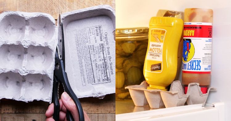 Easily put away condiments in the fridge by using an egg carton for those bottles that are better stored upside down. Now, getting that extra bit out of the bottle will never be hard again!